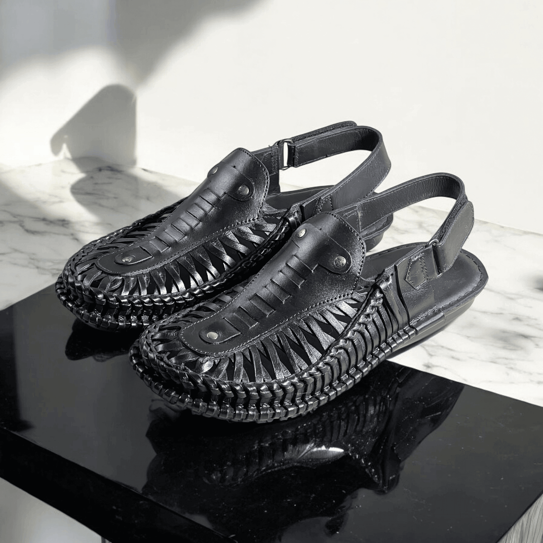 Leather Kolhapuri Sandal Blk-1007