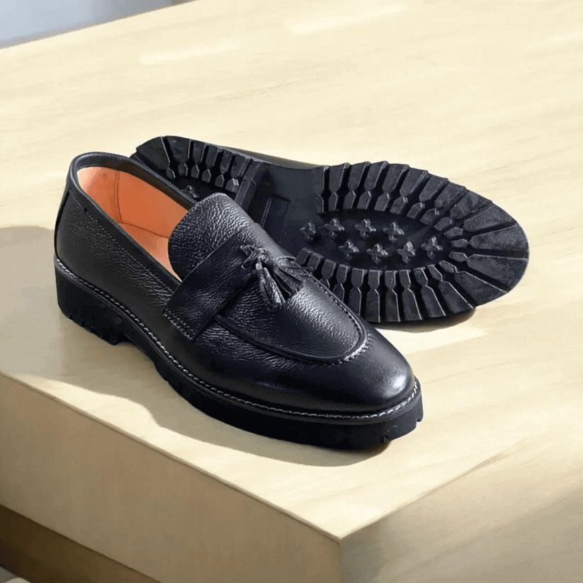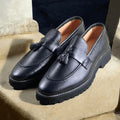 Indulge in luxury with Leather Chunky Tassel blk-018. Handmade with premium mild leather, these formal lace-up shoes exude class and sophistication. Perfect for any formal occasion, these shoes are sure to elevate your style. Crafted with the utmost attention to detail, these shoes are a must-have for any fashion-forward individual.