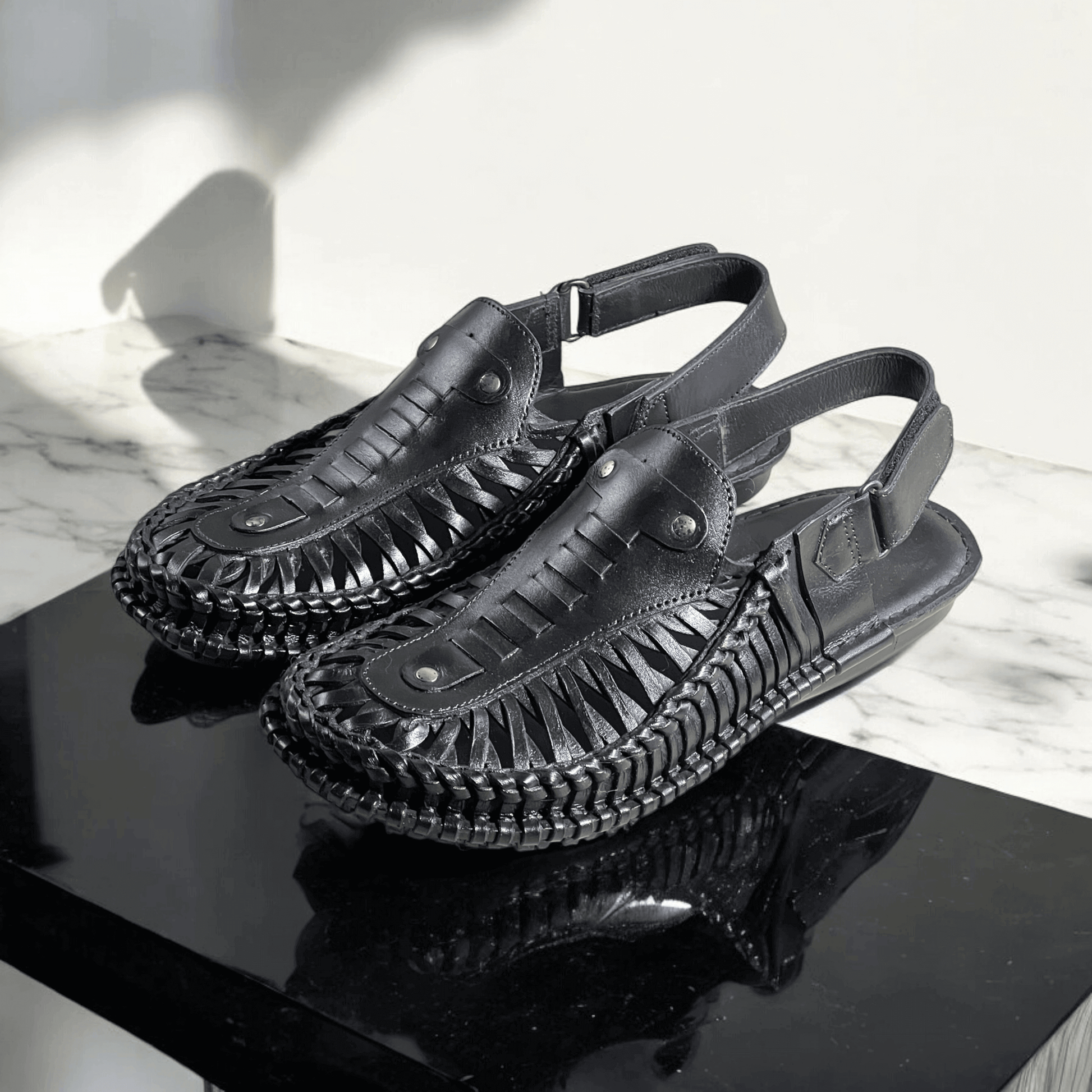 Indulge in luxury with our Leather Kolhapuri Sandal Blk-1007 Handmade Premium Quality Shoes. Each pair is carefully crafted by hand, ensuring the utmost attention to detail and unparalleled comfort. Elevate your style with these expertly made shoes that provide both sophistication and durability.