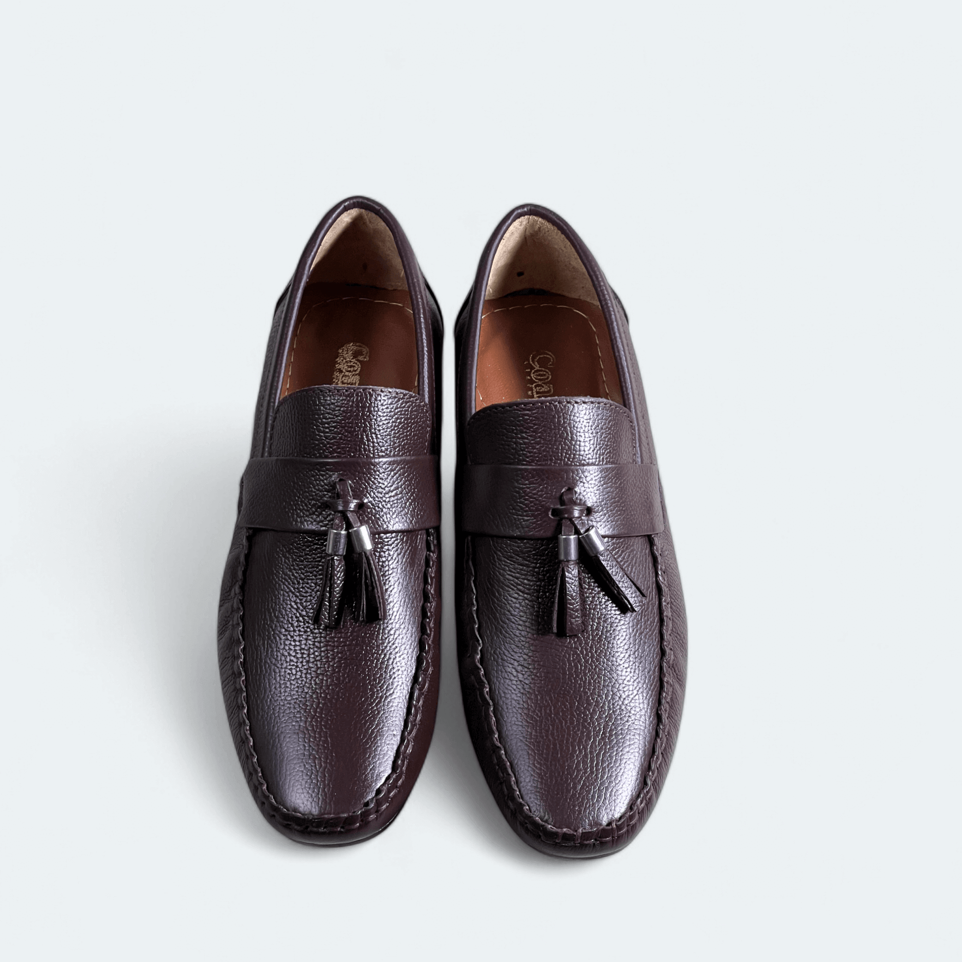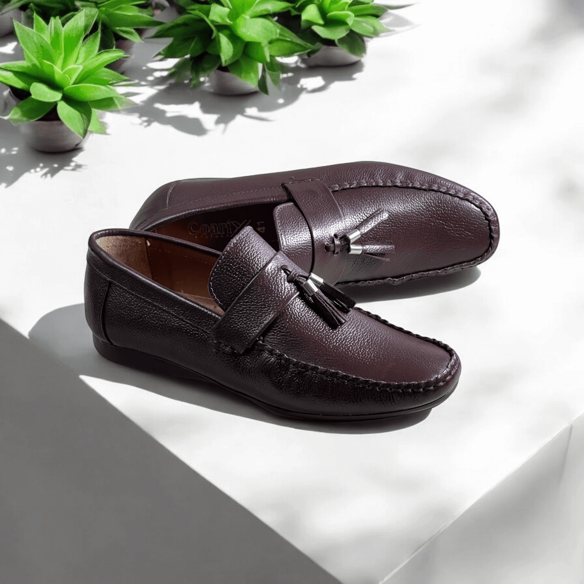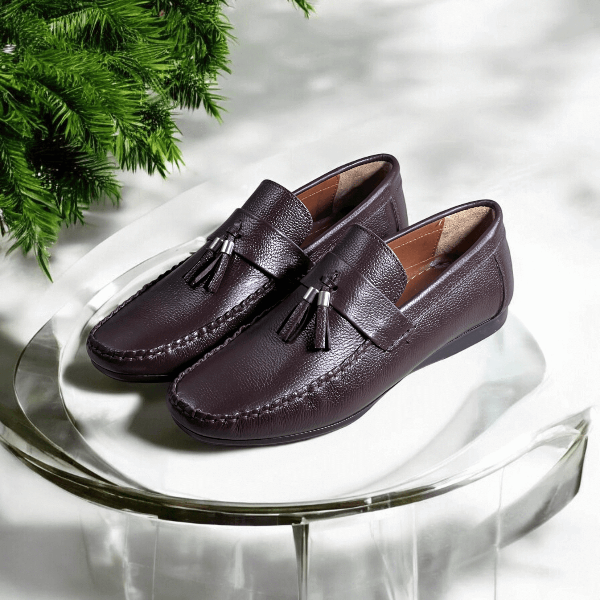 Crafted with high-quality leather, our Leather tassel brown-5011 is a stylish and comfortable choice for any occasion. Featuring a classic lace-up design, this loafer is perfect for those looking to make a statement while also staying comfortable. Elevate your style and confidence with our Leather tassel brown-5011.