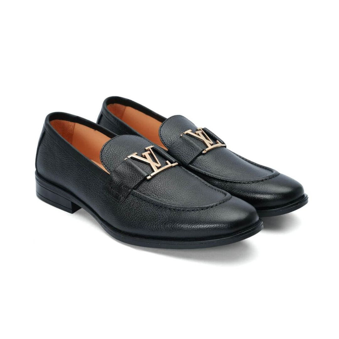 LV Buckle Soft Leather-2015 features comfortable and classy grain leather with a moccasin-style design on a durable rubber sole. The high-quality materials not only provide a luxurious feel but also ensure long-term comfort and style. Perfect for any occasion, this shoe combines fashion and functionality seamlessly.